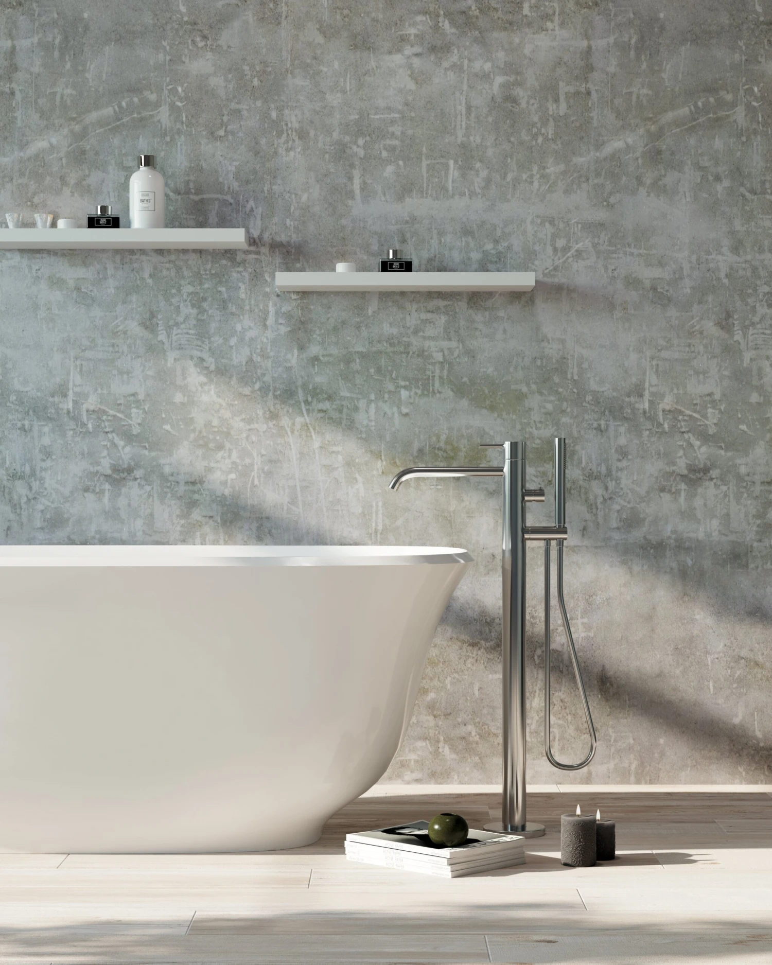 - Free-standing bath with chrome pop-up waste included.