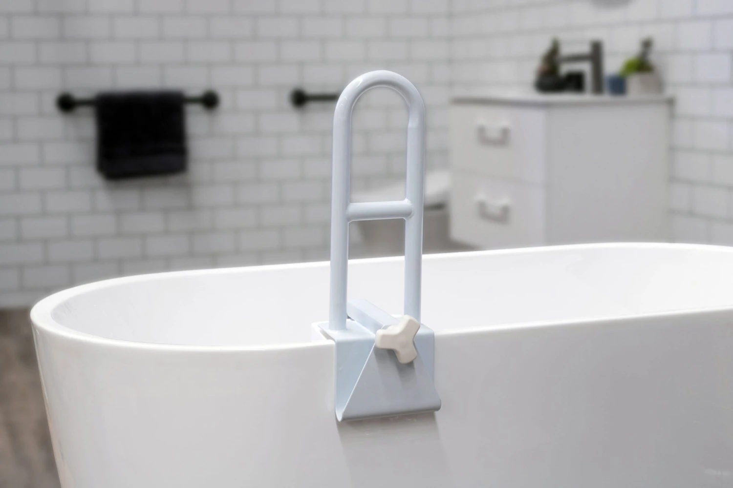 evekare manufactures a wide range of disability grab rails suitable for assisted living and aged care applications. Bath support grab rails can be installed onto bathtubs, to provide extra support when transferring in and out of the bath. Manufactured from steel with a white powder-coated finish.