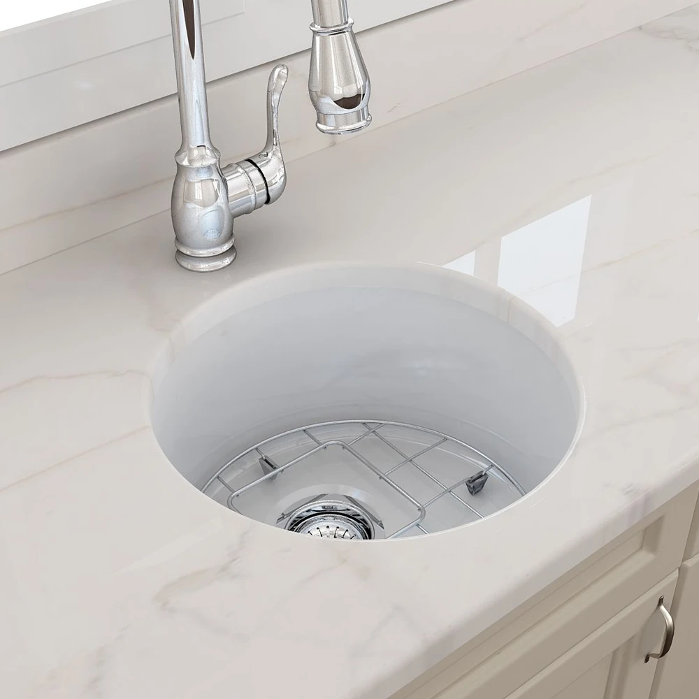 The Cuisine 47 Round is perfect for the modern kitchen, or could also be used as a luxury bar sink. It has been intelligently designed to be installed either inset or undermount. Install undermount and cut a drainer into the stone top for practicality plus wow factor! A white gloss glazed finish finishes a kitchen or similar application in a luxurious style. Made in Europe, the high quality fireclay and glazing is highly durable. This sink is thermal shock resistant, which means it can withstand fast changes in temperatures such as boiling water, which makes it stand out from other sinks on the market. The sink is highly stain, scratch and chemical resistant, making it more hygienic than most sinks on the market. Adding to the unique beauty of this sink is it’s fine fireclay composition, which is a stronger and less brittle product than ceramic, making it highly durable against the impacts of daily washing up. With a 30 year warranty, you cannot go wrong with a Turner Hastings sink. It includes a free basket waste to suit. Protect the base of your sink – stainless steel grid or rubber sink mat available (purchased separately on this website).