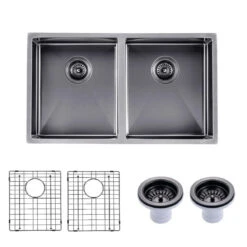 - Stainless Steel Double Bowls Sink w/ Strainer Waste 770x 450mm