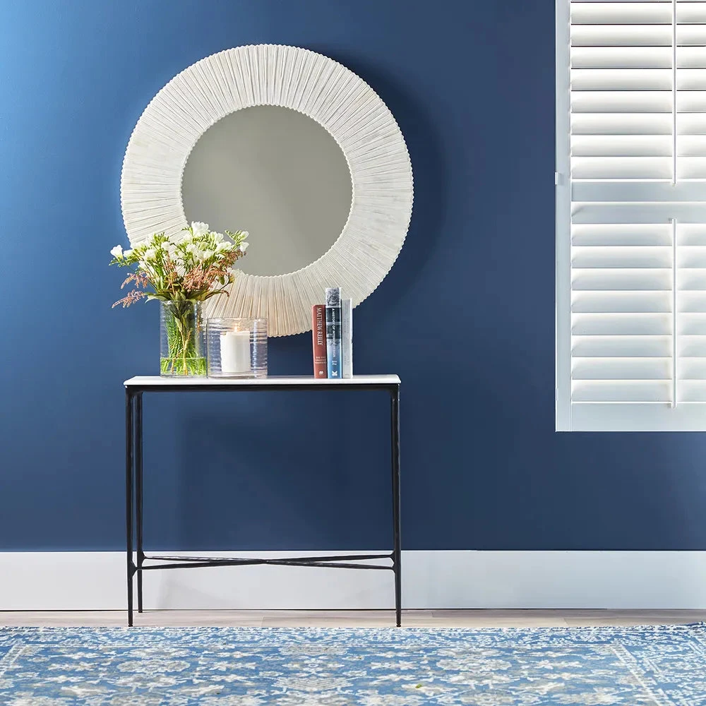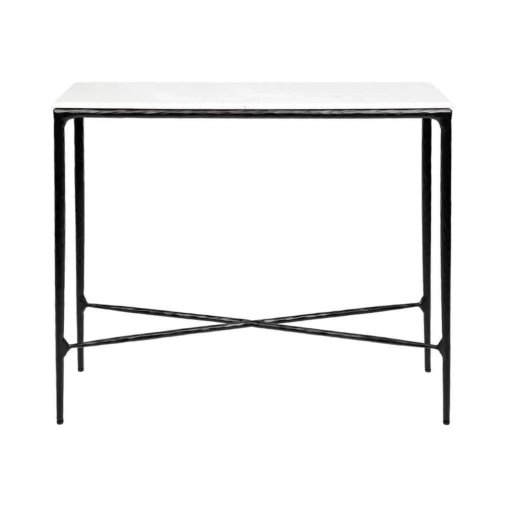 Timelessly elegant, our Heston collection merges the rustic sensibility of a hand forged solid iron frame with a rich counterpoint of organically smoothed curves in white marble, sourced from Greece. The fine and elegant silhouette of this design allows for practical adaptability in creating a sense of air in your space. Each piece is individually hand crafted by artisans to reveal an imperfect and organic texture.