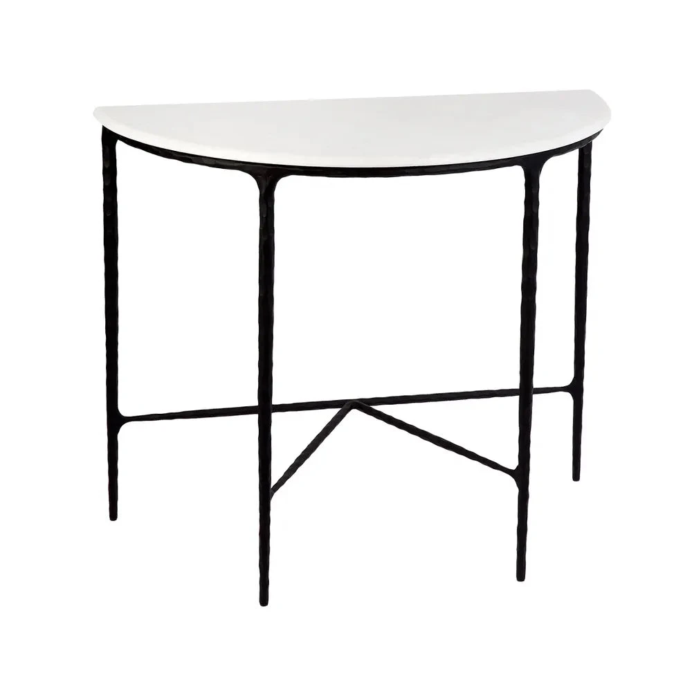 Timelessly elegant, our Heston collection merges the rustic sensibility of a hand forged solid iron frame with a rich counterpoint of organically smoothed curves in white marble, sourced from Greece. The fine and elegant silhouette of this design allows for practical adaptability in creating a sense of air in your space. Each piece is individually hand crafted by artisans to reveal an imperfect and organic texture.