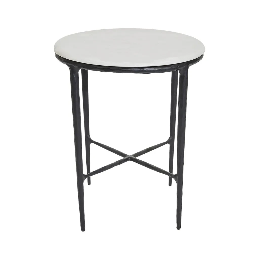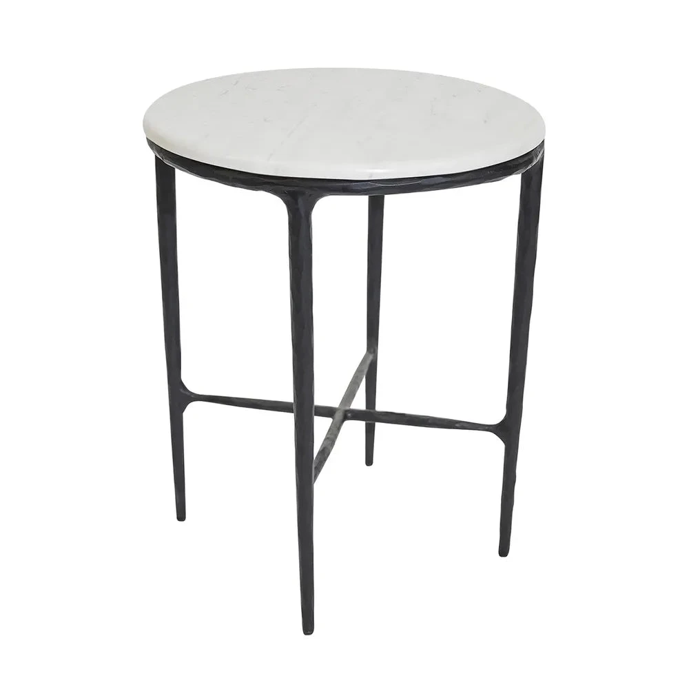 Timelessly elegant, our Heston collection merges rustic sensibility of a hand forged iron frame with a rich counterpoint of organically smoothed white marble, sourced from Greece. The fine and elegant silhouette of this design allows for practical adaptability to create a sense of air in your space. Individually hand crafted by artisans to reveal an imperfect texture, create symmetry with coordinating side tables in your living space or bedroom, or create a single statement to your armchair.