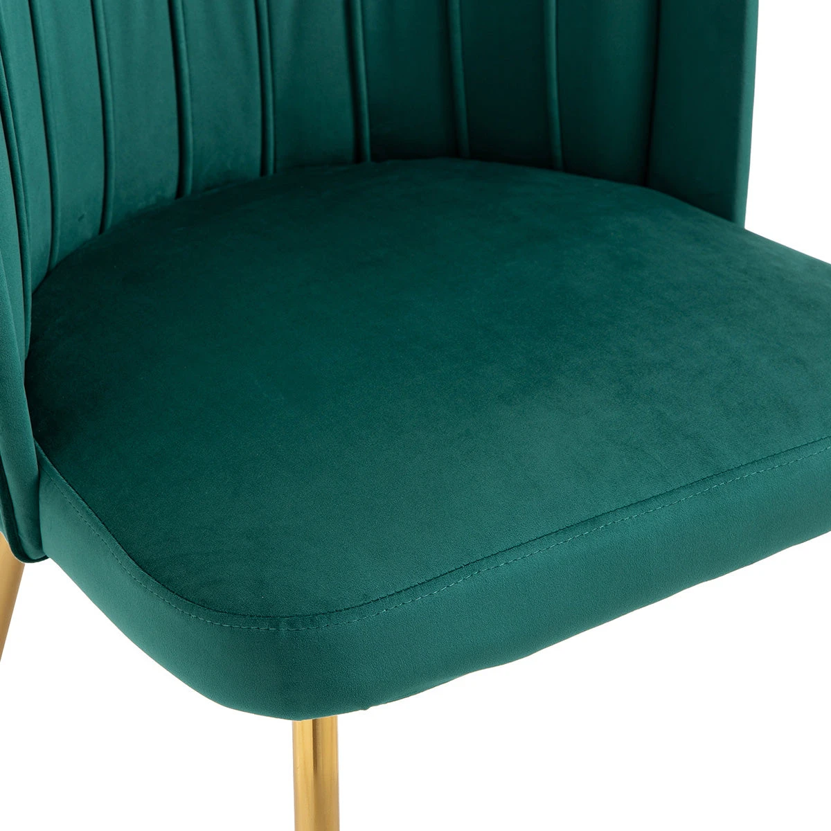 Upholstered in a stunning juniper green velvet, the Kiama dining chair is equally suited to both dining and living room settings. With a beautifully curved padded back rest and detailed piping, the Kiama dining chair delivers supreme comfort and effortless opulence. Slender gold legs enhance its curvaceous profile, adding a precise touch of mid century luxe. The Kiama dining chair is also available in navy and glacier grey velvet. Packaged as a Set of 2 Chairs.