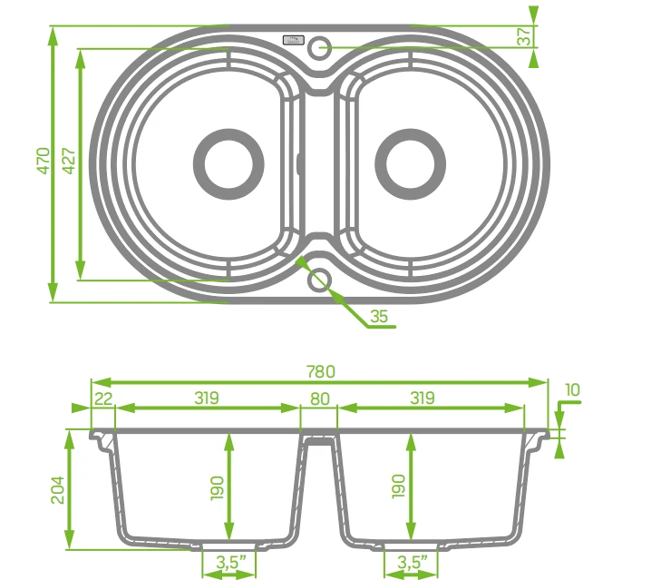 Aesthetic and round, this is what the Dafne sinks are like. If we have a Boho-style kitchen or we want to introduce a bit of lightness, instead of a rectangular or square sink we can put on round shapes. We can distinguish several models: a 1-bowl in two models, 1-bowl with a short drainer, 1-bowl with a drainer, and a 2-bowl one. Their shape and size will allow you to choose the right model when arranging the kitchen, while the deep bowl (19 cm) occurring in each mode will enable trouble-free dishwashing. The least space will be taken up by round models, without a drainer. These are usually comfortable sinks, which look nice against the background of the kitchen countertop. Laveo sinks are of Polish quality, which means Polish production, in which we focus on adapting the products to the needs, thanks to their durability and ease of cleaning.