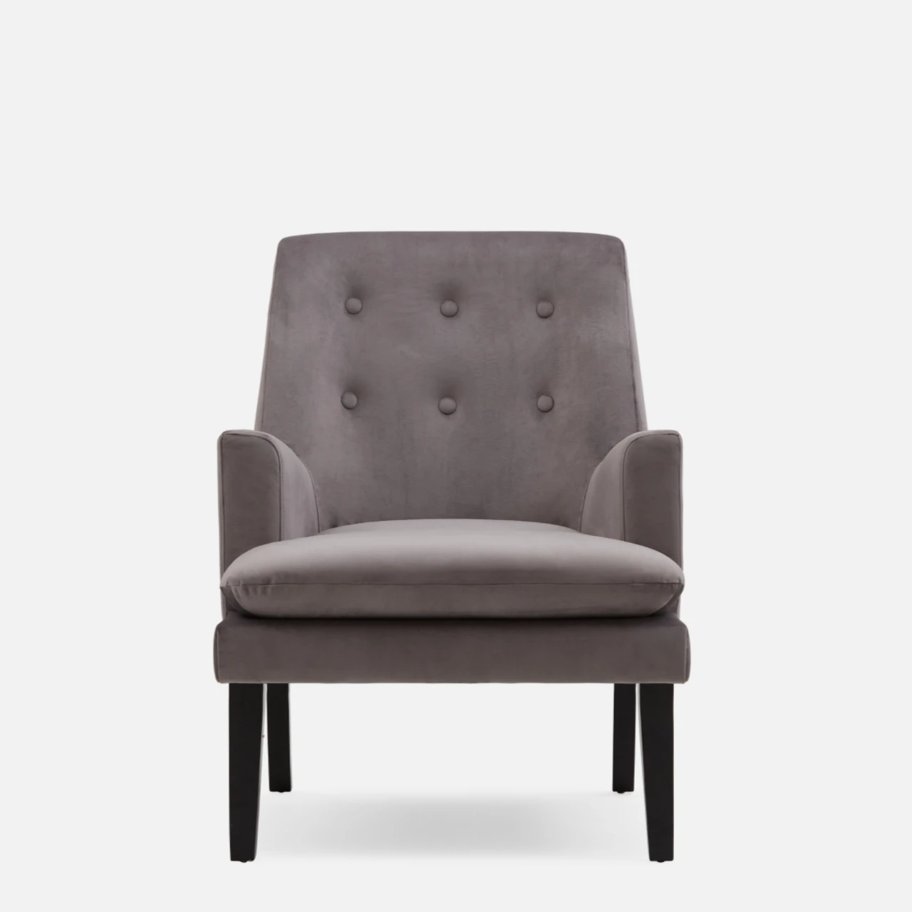 One look at Masha and you just know this is a comfortable armchair. The seat is a covetable spot to curl up in the living room, office or bedroom. Solid wood legs and a pine-and-plywood frame provide assurance of its quality construction.