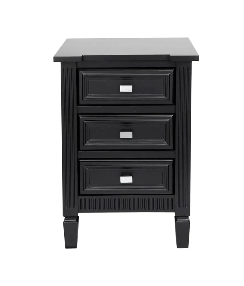 Inspired by a desire for timeless pieces, our Merci range encapsulates a contemporary silhouette with classic moulded framing and understated chrome handles. Finished in an elegant black or white satin, the Merci range transcends from a sophisticated coastal or refined Hamptons to a classic contemporary interior style. Designed with all of the definitive elements for functional and storage solution. In two size options this Merci narrow bedside table does not compromise storage needs in your bedroom.