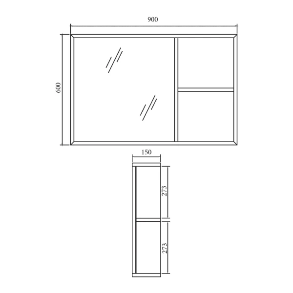 MIDI series shaving mirror, MD-90S, matches well with MIO or MI series of 90cm vanity in design, colour & size. With its two-layer side shelf at right or left, it creates an additional convenient space for your daily essential beauty products. This horizontal mirror in an 18mm woodgrain plywood frame used the best quality copper-free mirror will be a talking point of your bathroom.