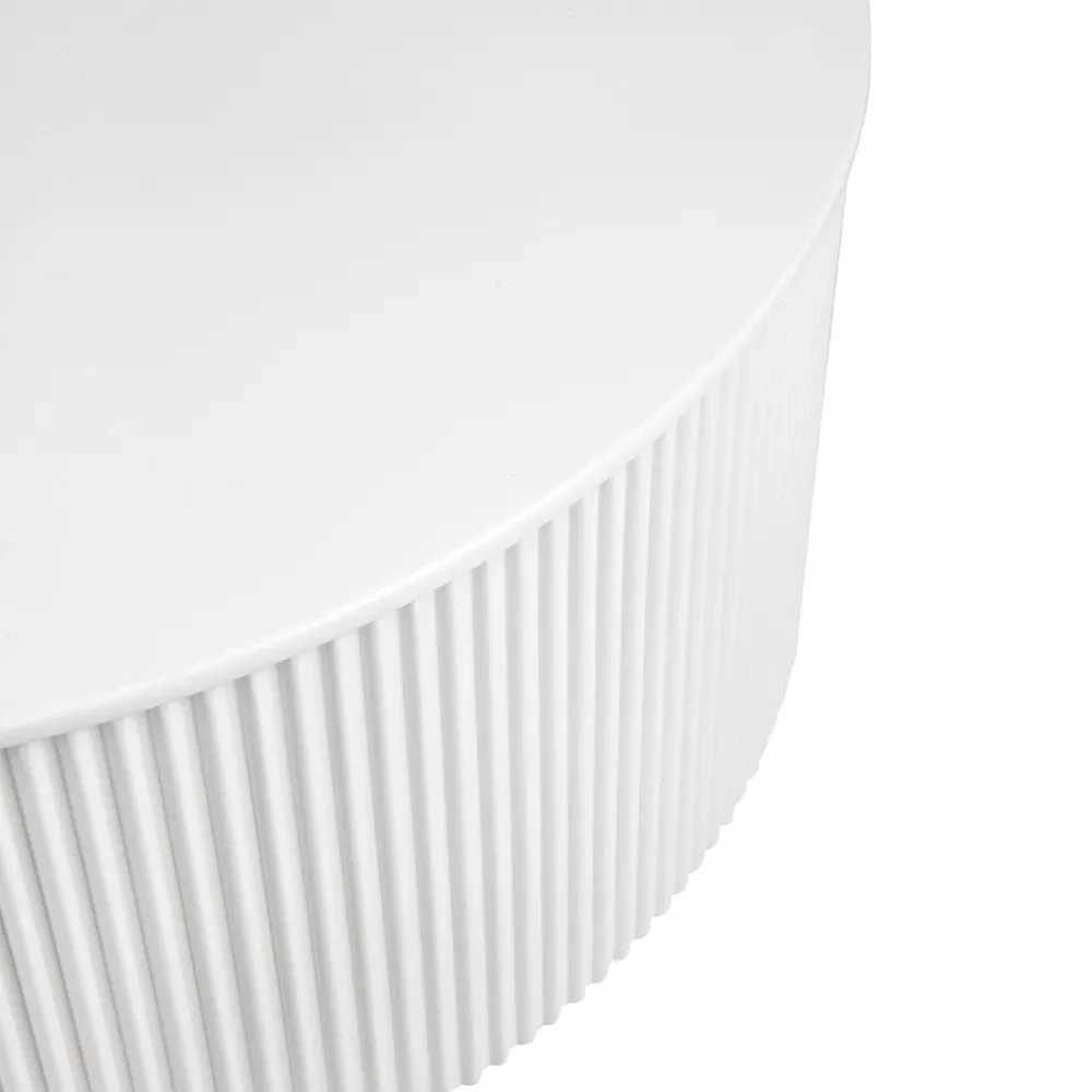 Uniting organic rounded surfaces with linear patterns, the Nomad coffee table delivers a natural aesthetic to a contemporary design. A fresh white satin finish provides a crisp visual that enriches its textured facade. A stylish and organic construct for both traditional and modern spaces
