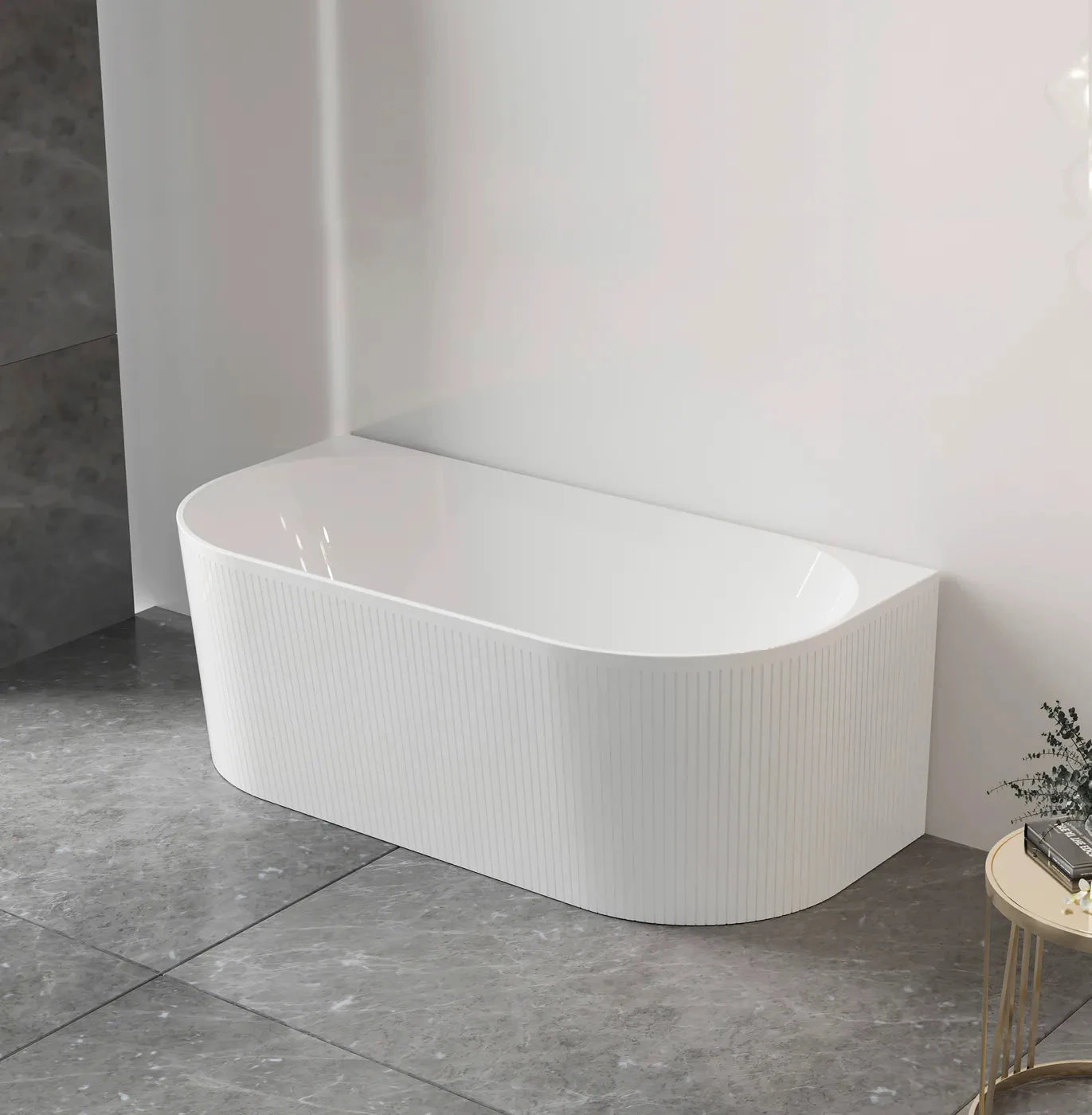 – This bath has vertical sides and rear making it ideal to install flushed to wall or into a left or right corner.