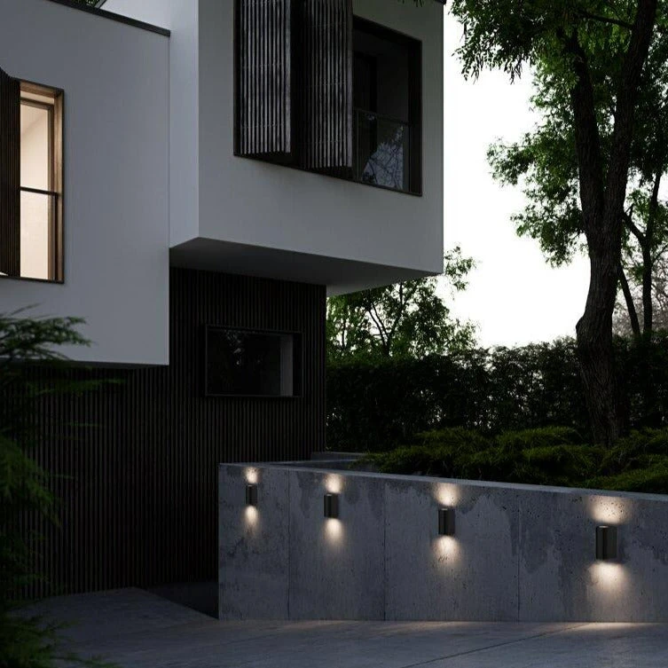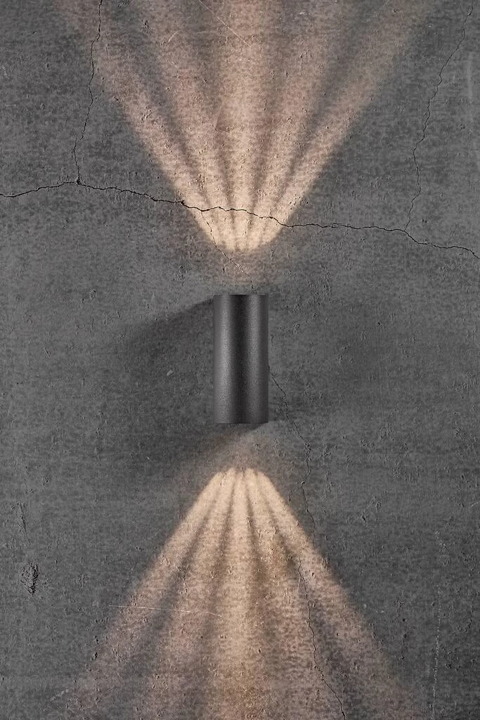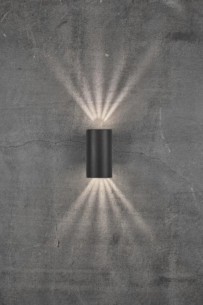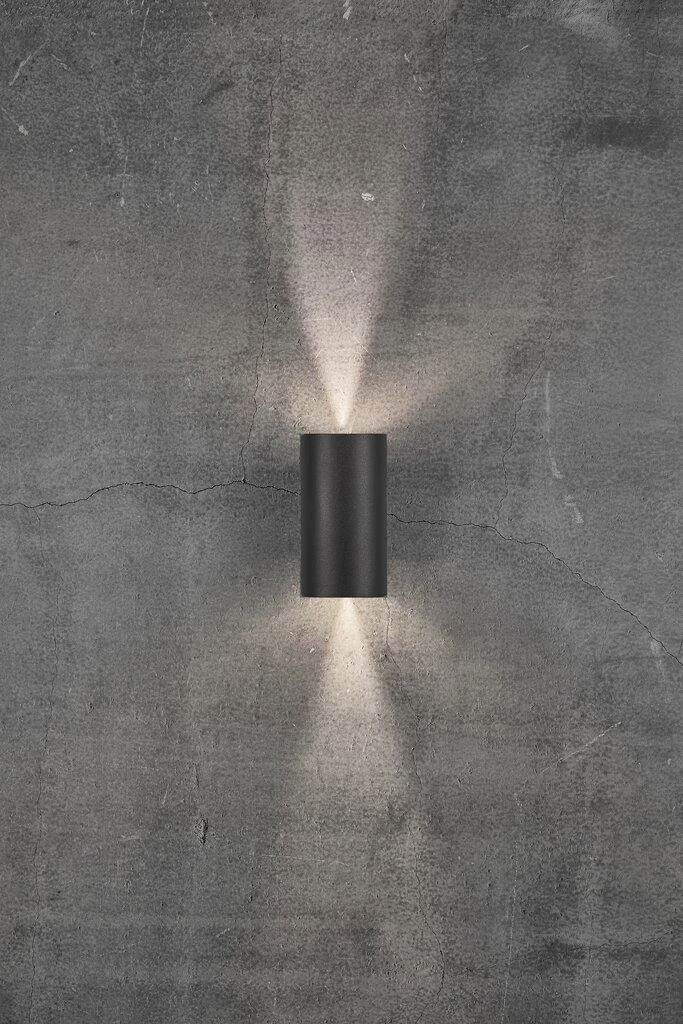 Simple and elegant wall light for outdoor use, made of lacquered metal. The light provides both up-facing and down-facing light and is ideal for the driveway or the main entrance. Supplied with LED light bulb with a low energy consumption and a long life.