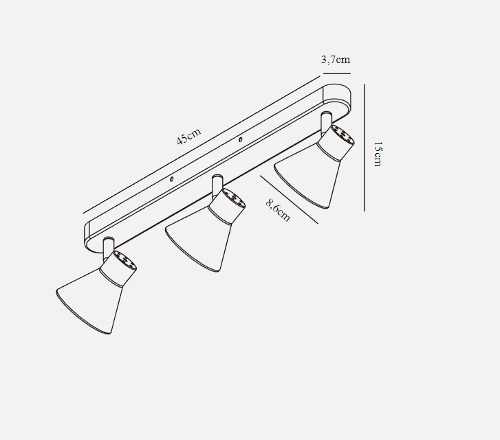 Discreet and practical spotlight fixture with three spotlights in grey. This spotlight can be placed in different locations in the home and create focus or cosiness depending on how it is placed.