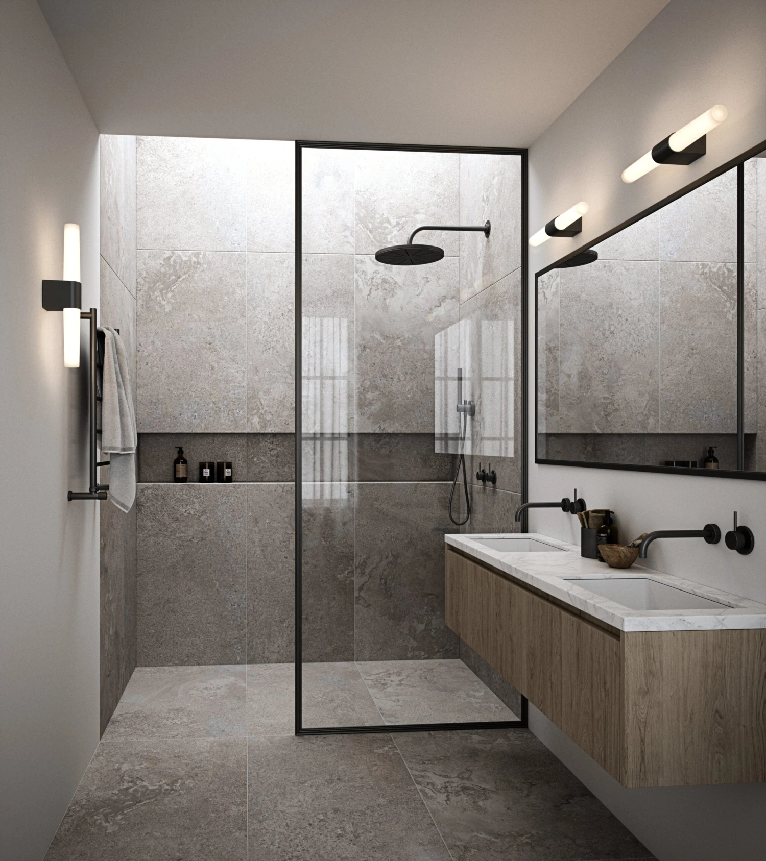 Helva Double Basic is a modern and minimalistic wall lamp with integrated LED that with its high degree of protection, IP44, is suitable for humid areas such as the bathroom.
