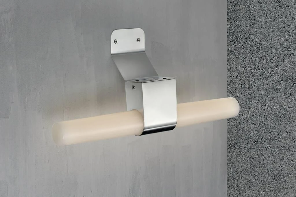 Helva Double is a modern and minimalistic wall lamp with integrated LED and 2-step Moodmaker SceneSelect functionality, that allows you to dim the light by touch and select your ideal colour temperature with a beautiful and natural light, R90. As the wall lamp has been given a high degree of protection, IP44, makes it suitable for humid areas like the bathroom.