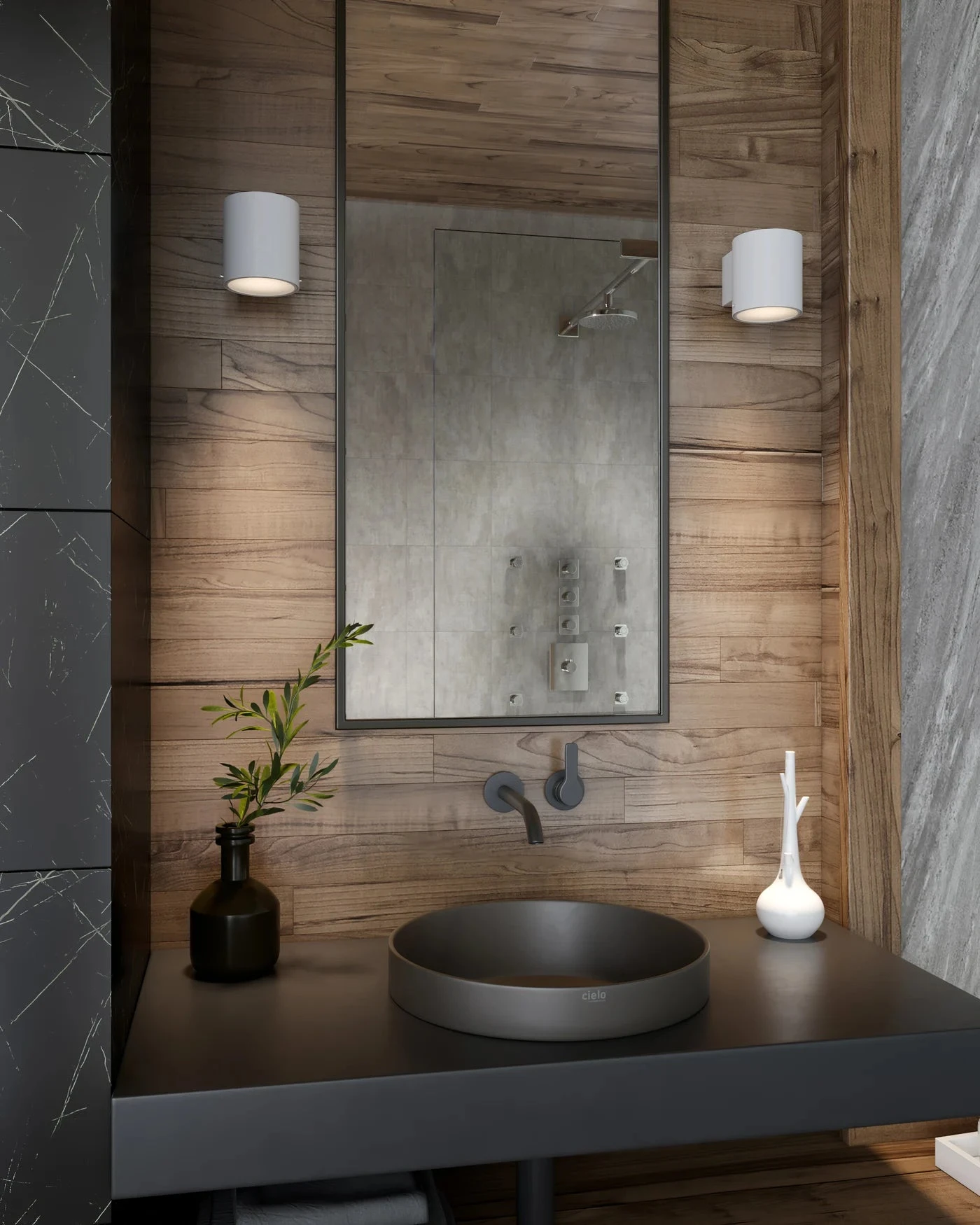 The IP S5 has a minimalist and industrial look. It is ideal for placement next to the mirror in the bathroom, where it provides excellent down-facing light which can be angled 20 degrees. Part of the IP series. Design by B ¸nnelycke MDD.