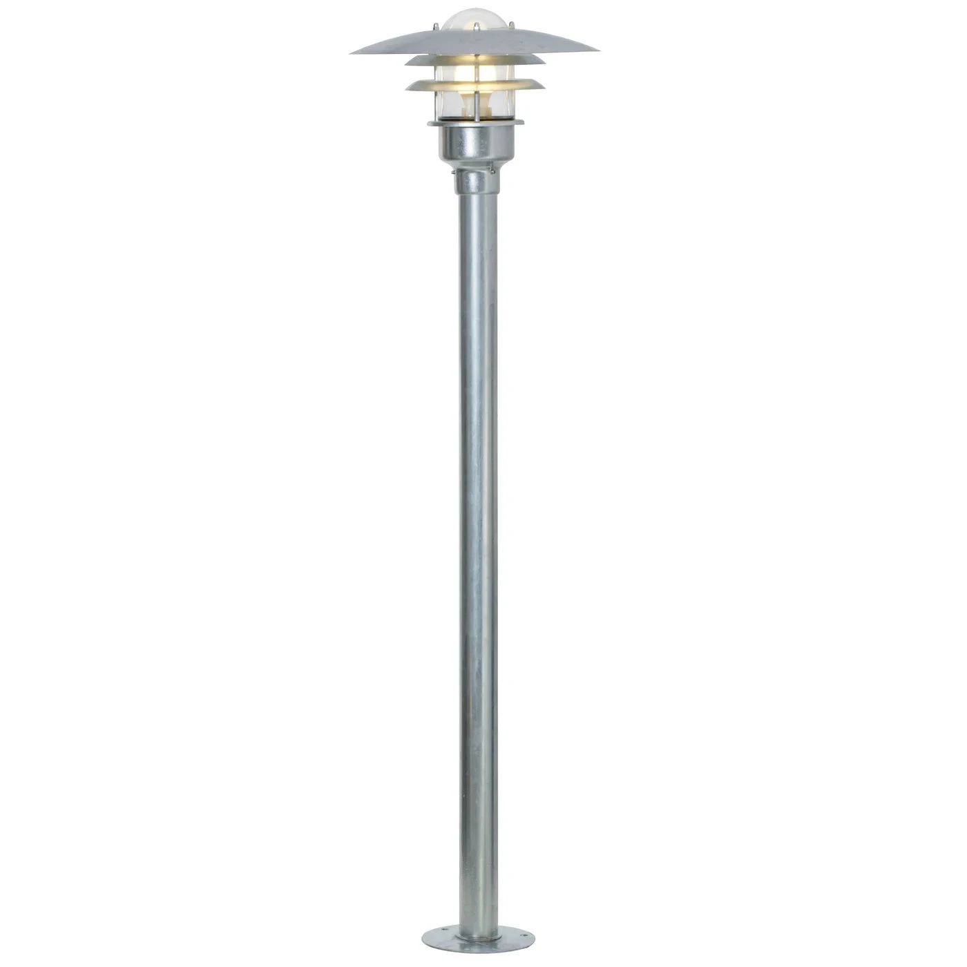 The galvanised finish makes the light fixture resistant to the Nordic climate. We recommend light fixtures in galvanised steel for coastal areas. It is possible to purchase a base for pillar lighting appropriate for this product..