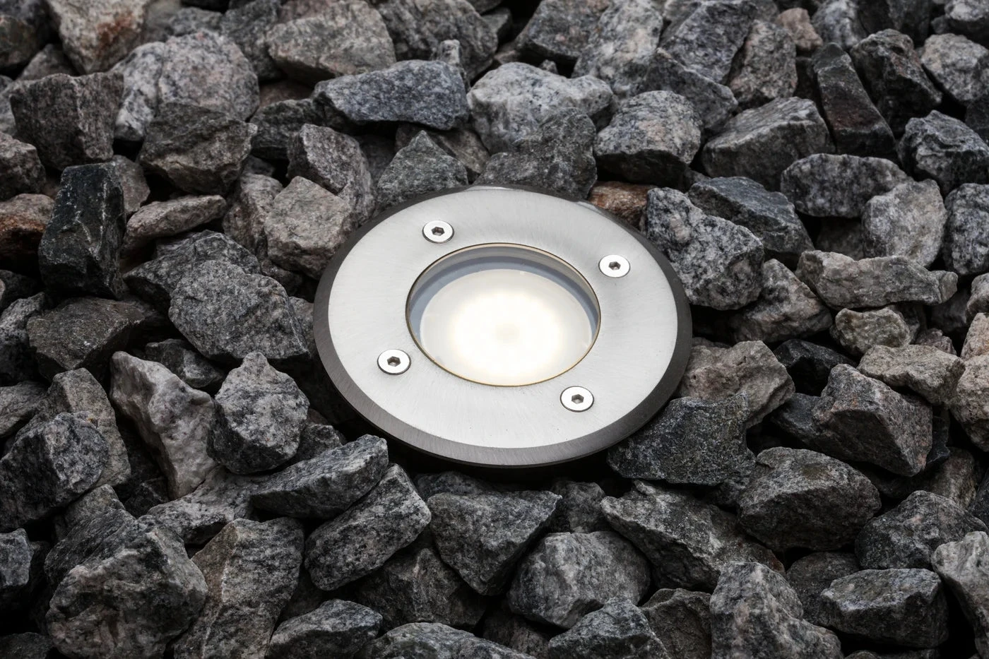 Round recessed spotlight in stainless steel from Nordlux. With this spotlight you get the opportunity to illuminate the driveway, walkway, or patio, and obtain excellent lighting without visible spotlights.