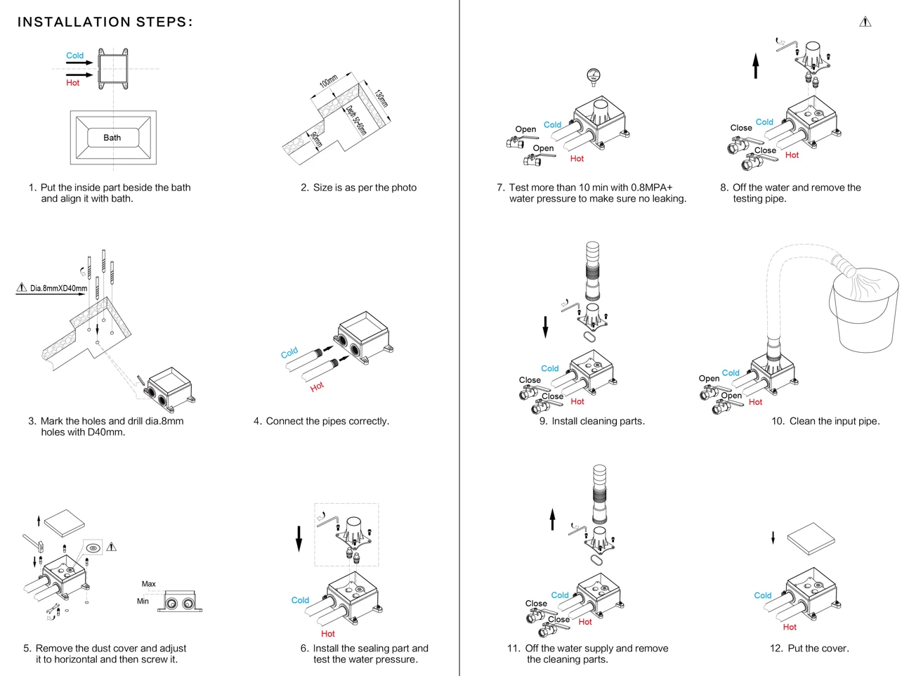 - Cold & hot water pipe separate interface