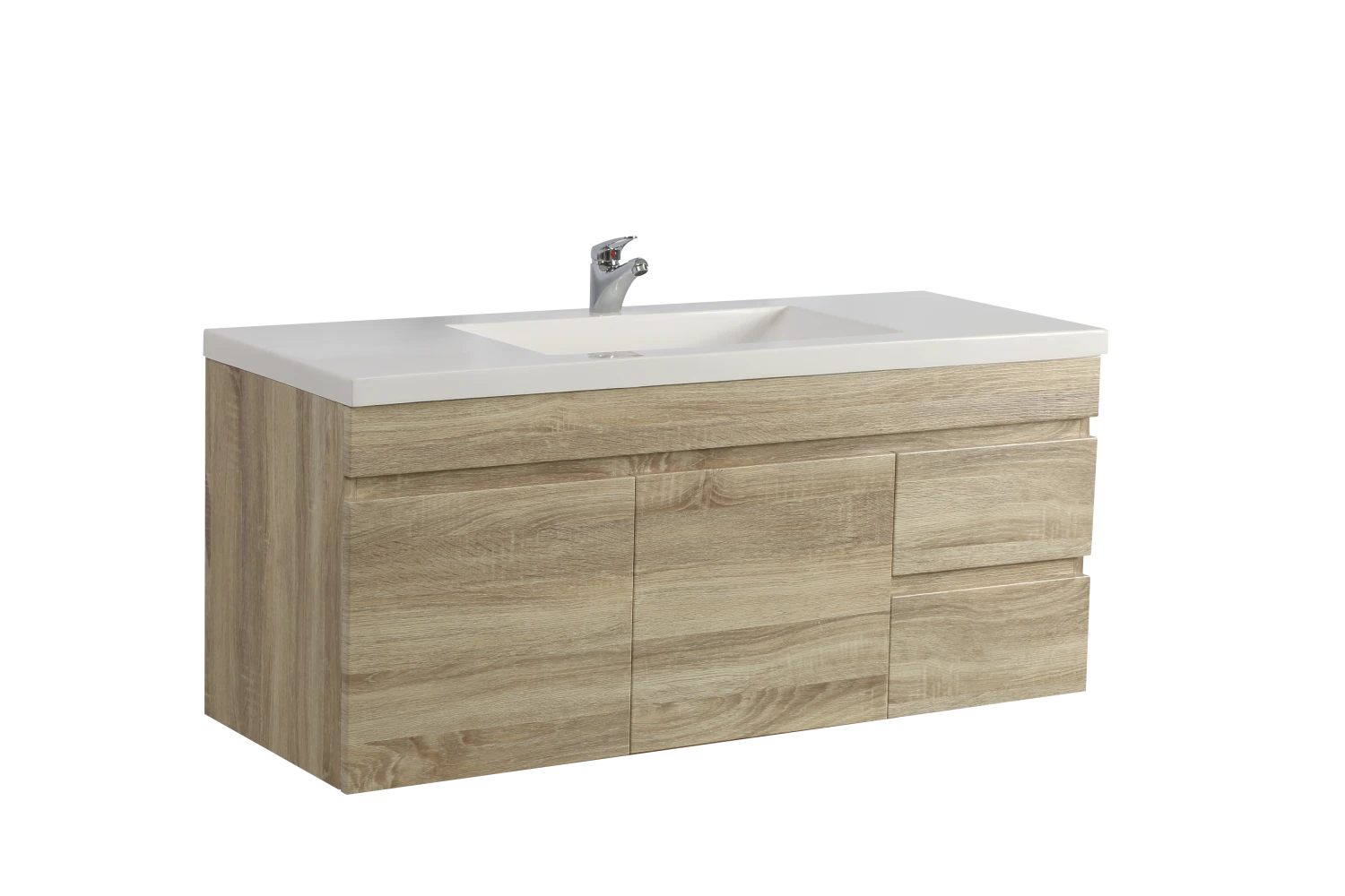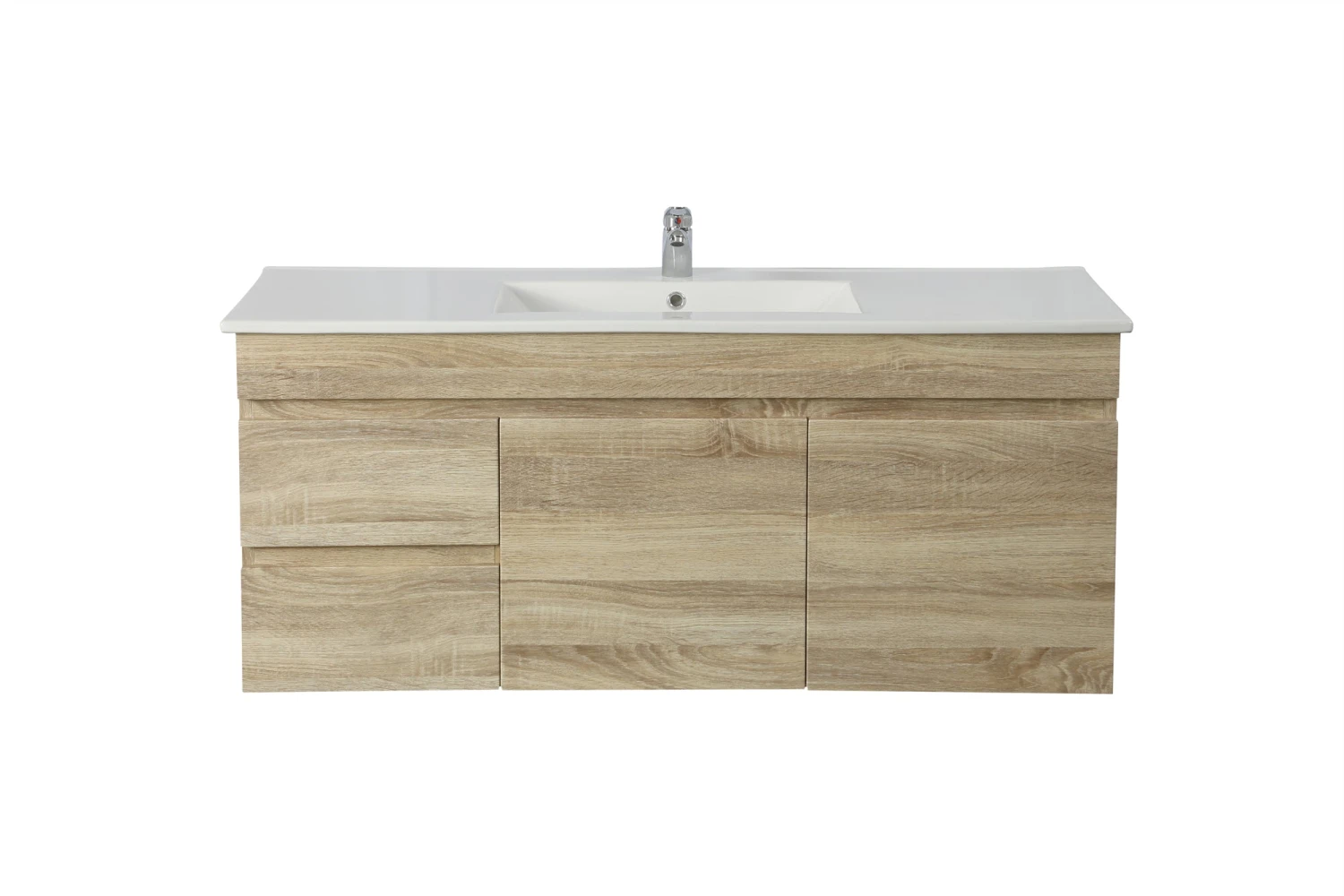 Modern design brings contemporary intrigue and style to your bathroom or powder room with the organic aesthetics, clean details and wall mount design of this bathroom vanity. Crafted using cutting-edge technology and high moisture-resistant plywood which imparts durability and robustness, this vanity is made for those who believe in combining the best of functionality with aesthetics. It is crafted keeping all your storage needs in mind and as such can easily become the perfect storehouse of your beauty essentials and toiletries thanks to its two shelving compartments.