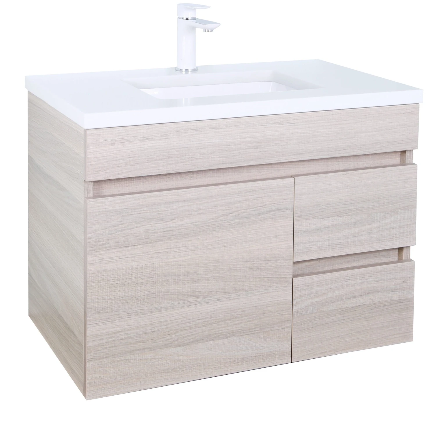 Modern design brings contemporary intrigue and style to your bathroom or powder room with the organic aesthetics, clean details and wall mount design of this bathroom vanity. Crafted using cutting-edge technology and high moisture-resistant plywood which imparts durability and robustness, this vanity is made for those who believe in combining the best of functionality with aesthetics. It is crafted keeping all your storage needs in mind and as such can easily become the perfect storehouse for your beauty essentials and toiletries thanks to its two shelving compartments.