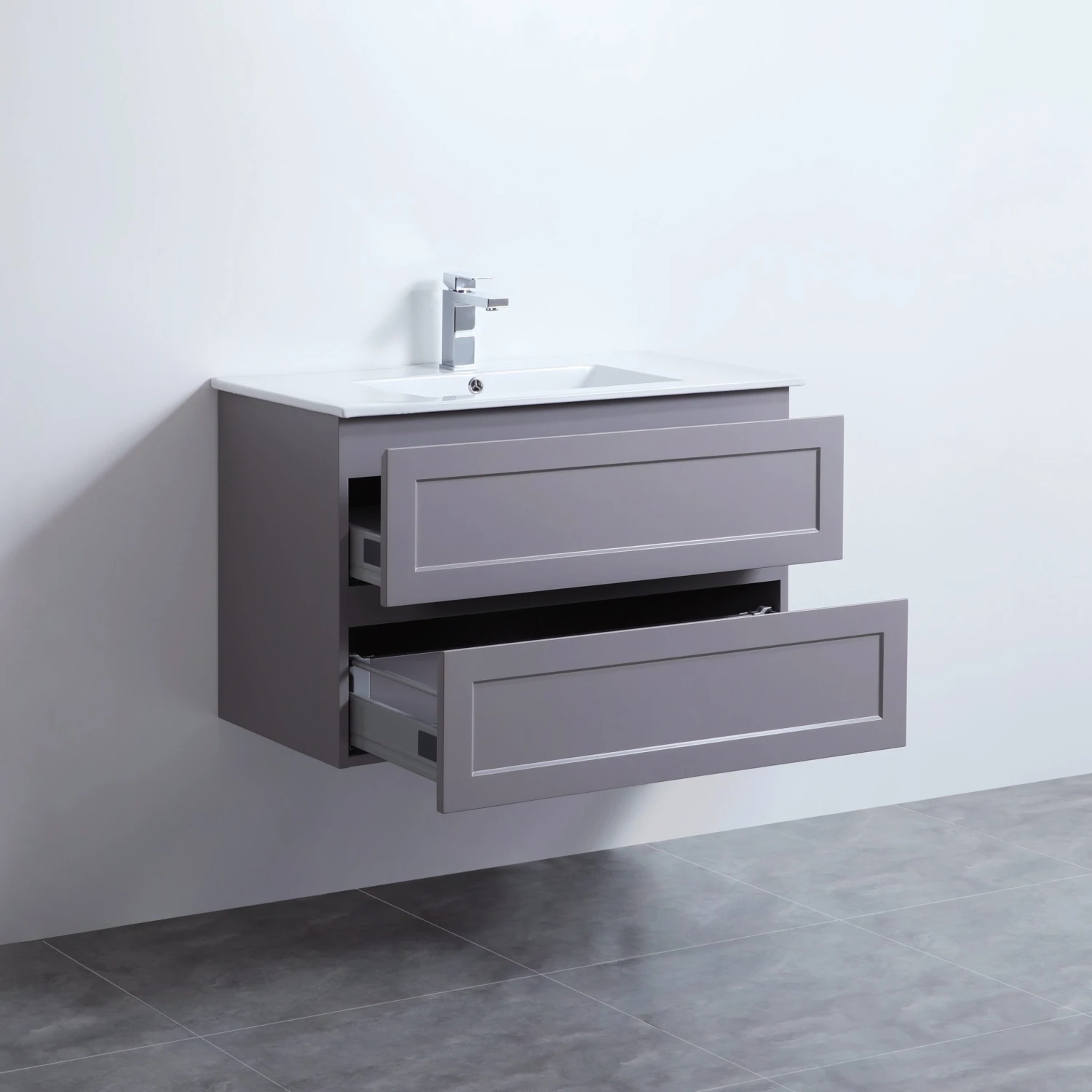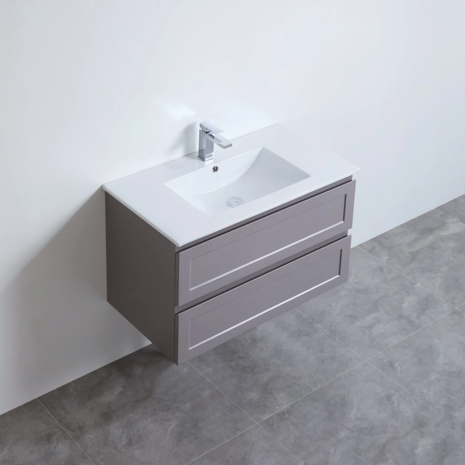 Modern design brings contemporary intrigue and style to your bathroom or powder room with the organic aesthetics, clean details and wall mount design of this bathroom vanity. Crafted using cutting-edge technology and high moisture-resistant plywood which imparts durability and robustness, this vanity is made for those who believe in combining the best of functionality with aesthetics. It is crafted keeping all your storage needs in mind and as such can easily become the perfect storehouse of your beauty essentials and toiletries thanks to its two shelving compartments.