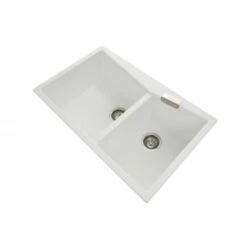 ARETE White Granite Quartz Stone Double Kitchen Sink 838x476mm