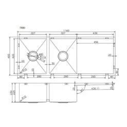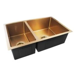 Double Bowl Handmade 304 Stainless Steel Kitchen Sink Brushed Yellow Gold 710x450x205mm