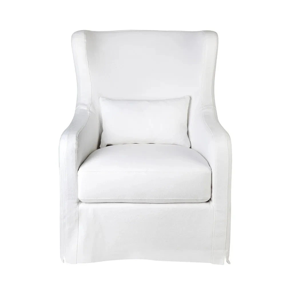 Built for movie nights and reading a great book, the Riviera Arm Chair Range is the ultimate comfort for your home. As versatile as it is good looking, this chair boasts convenience and ease with a simple to replace, machine washable Slip Cover. A true indulgence with soft plush support cushion and 360 degree swivel action. Now smart, can be stylish too. Also available in Grey.