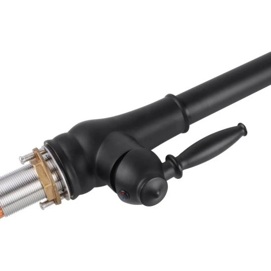This gorgeous mixer has a modern twist on a classical design. This fancy mixer is stunning in both the looks and durability department. The curved body suits any kitchen needing a more comfortable feel, while the matte black finish gives the mixer a modern feel. This mixer’s interior construction is made up of brass giving it a 15-year warranty. The head pulls out length 400-600mm that is retractable and allows you to control the direction of water. The button on the pull-out handheld gives the choice between a jet and stream of water. So, for a practical, comfortable looking kitchen mixer, look no further.