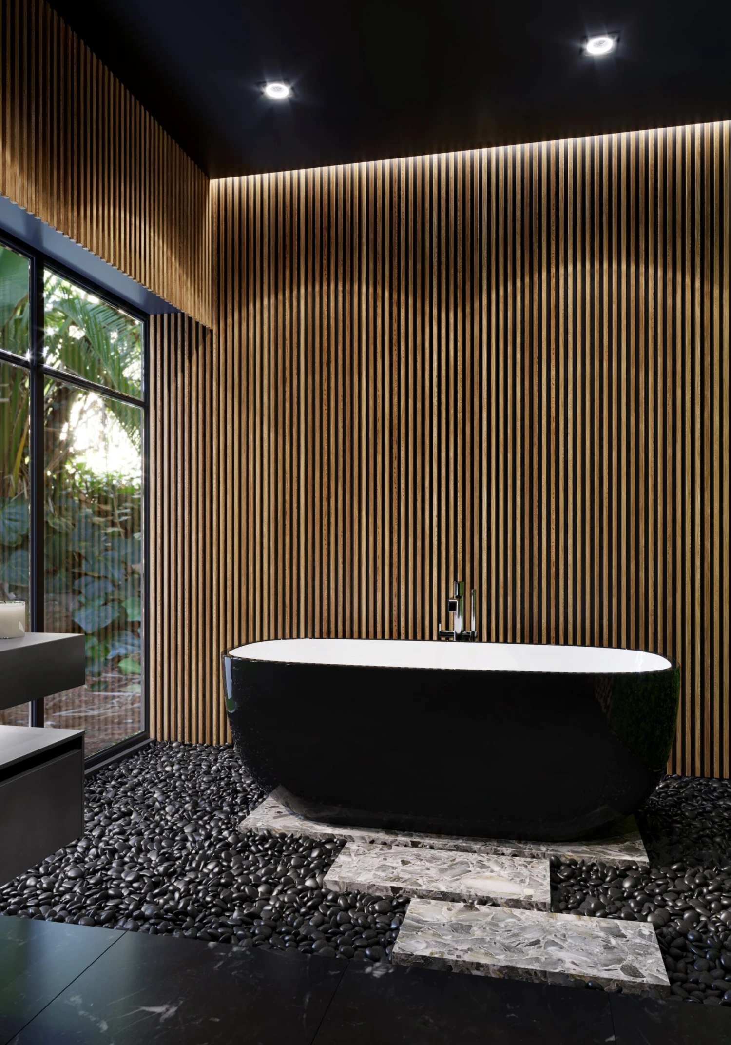 - Free standing bath with chrome pop-up waste included.