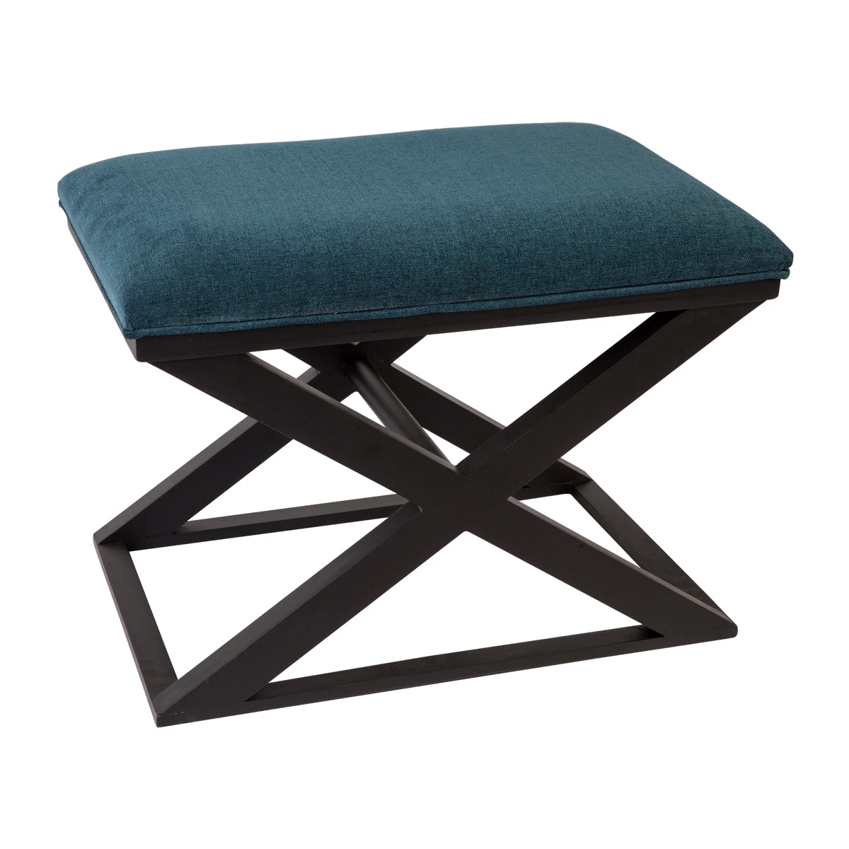A stylish cross legged timber frame in a smooth black finish provides a classic base for the Spencer black timber stool. Its aptly cushioned top is upholstered in a luxurious teal chenille fabric working in charming contrast to its solid frame. A truly versatile piece, the Spencer black timber stool can be used as a footrest, seat, or side table. Also, available in moss green, black or natural, this piece offers timeless appeal.