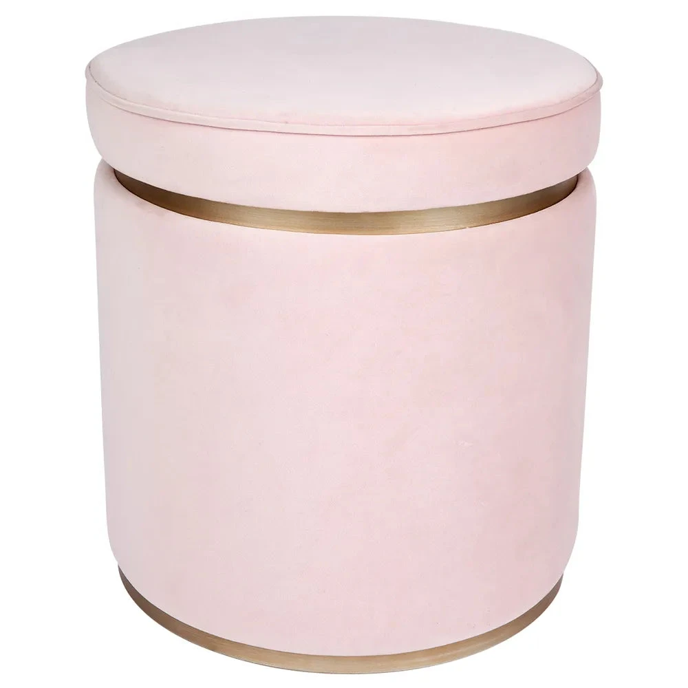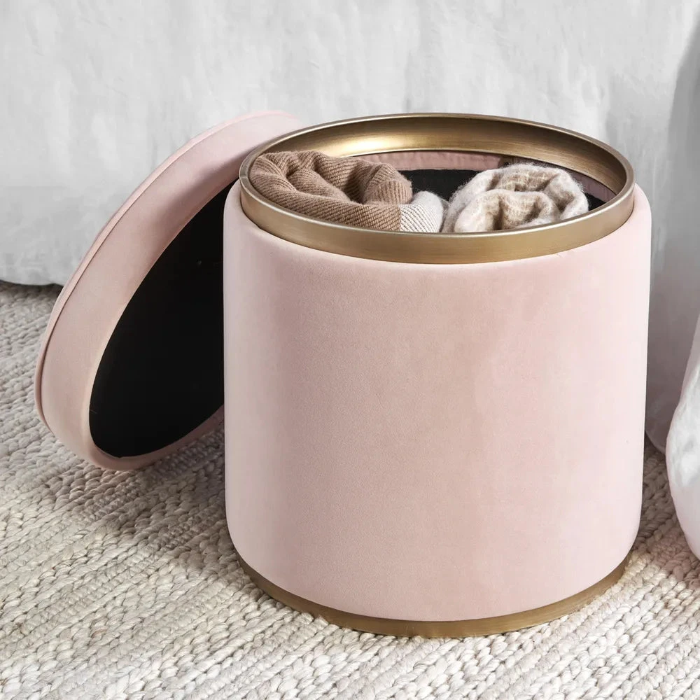 Injecting a gorgeous pop of colour into your interiors, the Totti storage stool is truly versatile. Indulge your senses with clean, uncomplicated design enveloped in a dreamy shade of sumptuous blush velvet. The Totti storage stool features an antique gold finished rim and base adding refined glamour to its profile. Cleverly doubling as a practical storage solution, the Totti is as useful as it is chic with its removable cushioned lid revealing ample space for storing easily accessible household items. Available in a range of lust worthy colours, and at an attractive price point, the Totti is hard to resist